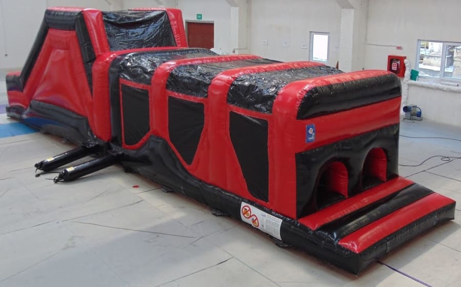 Do you have the energy to tackle the 42 ft assault course ! Run and climb your way through the course to the slide at the end .