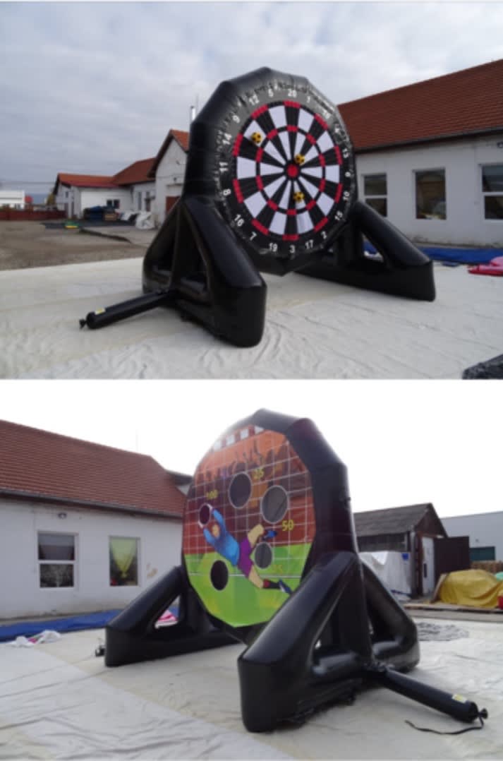 Can you score 180 ? with the latest craze to hit the inflatable market . Kick the footballs or rugby balls to see who can get the highest score ..